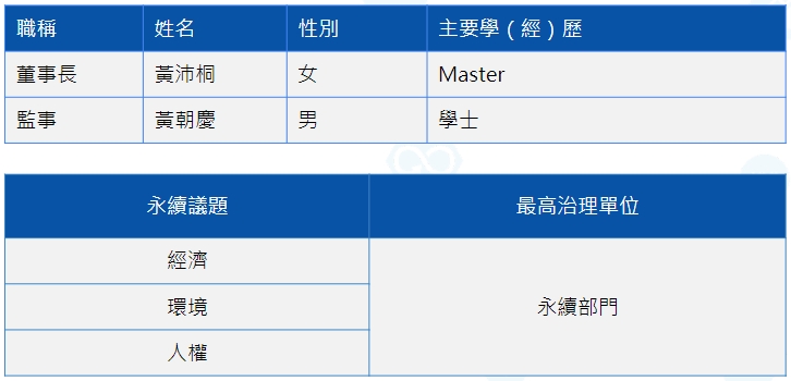 針對薪傳智庫的永續治理結構中,董事會為最高治理單位,公司的營運決策及風險管理皆由董事長負責,為能持續提升經營管理,求得創新並精益求精,最高治理單位均具備高度永續知識與業務技能,足以帶領公司前進;而擁有劃分明確的組織架構,其確保公司整體發展能高效率的展開,使得永續發展目標能夠生生不息,持續擴大。
